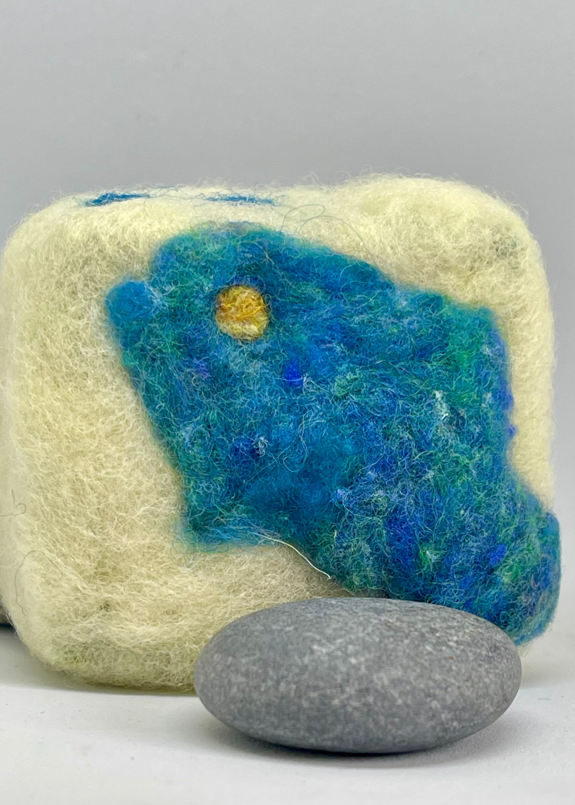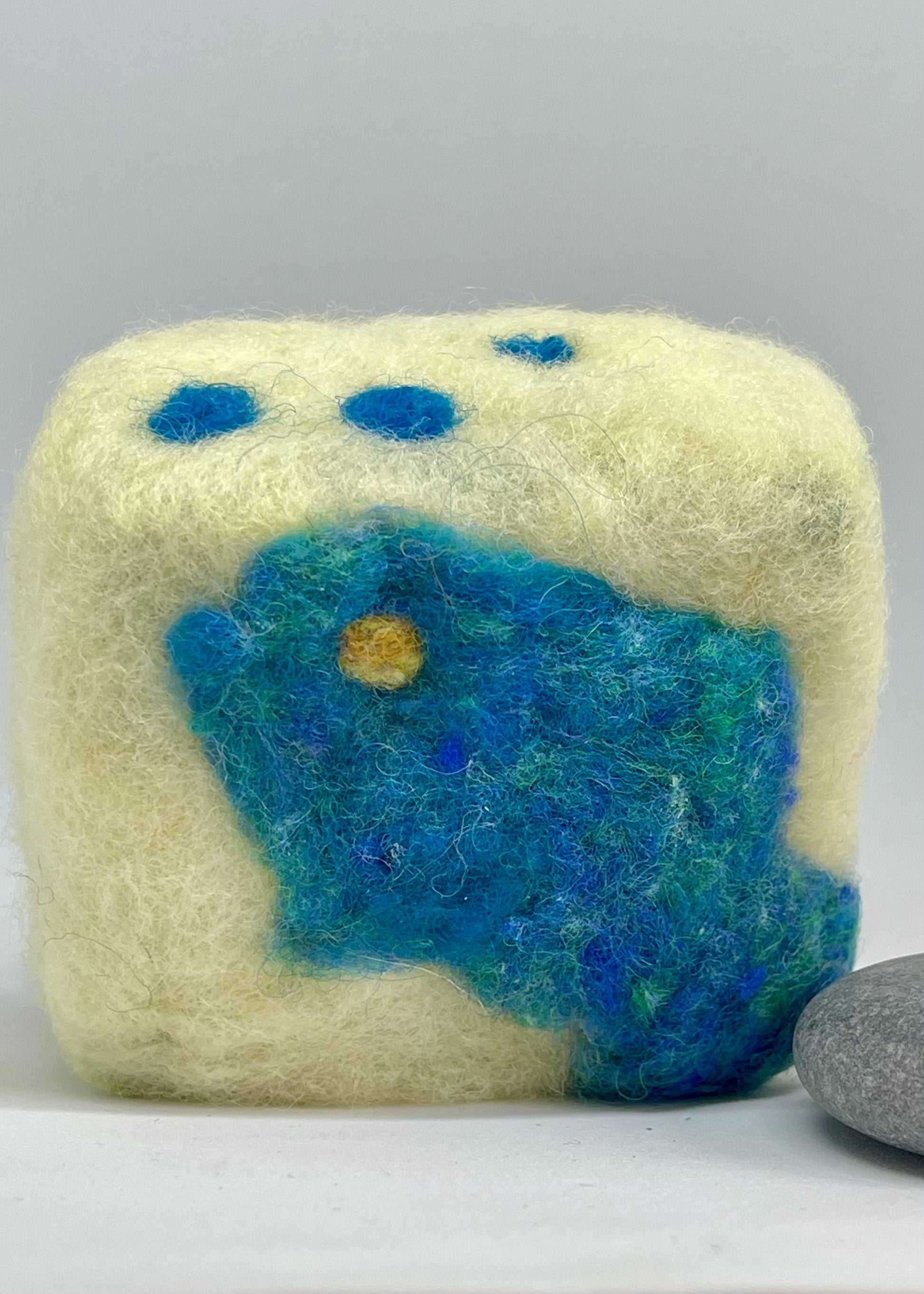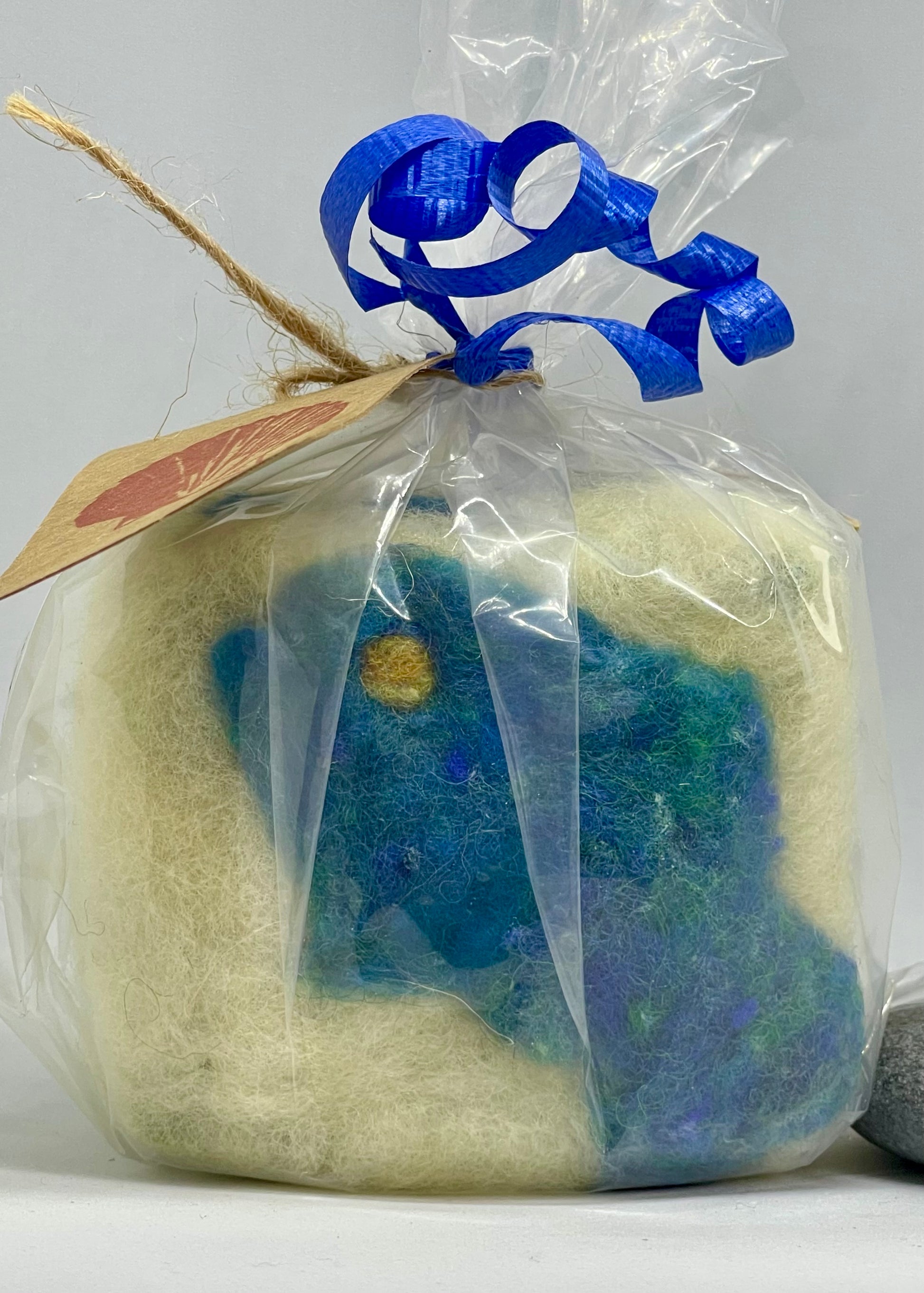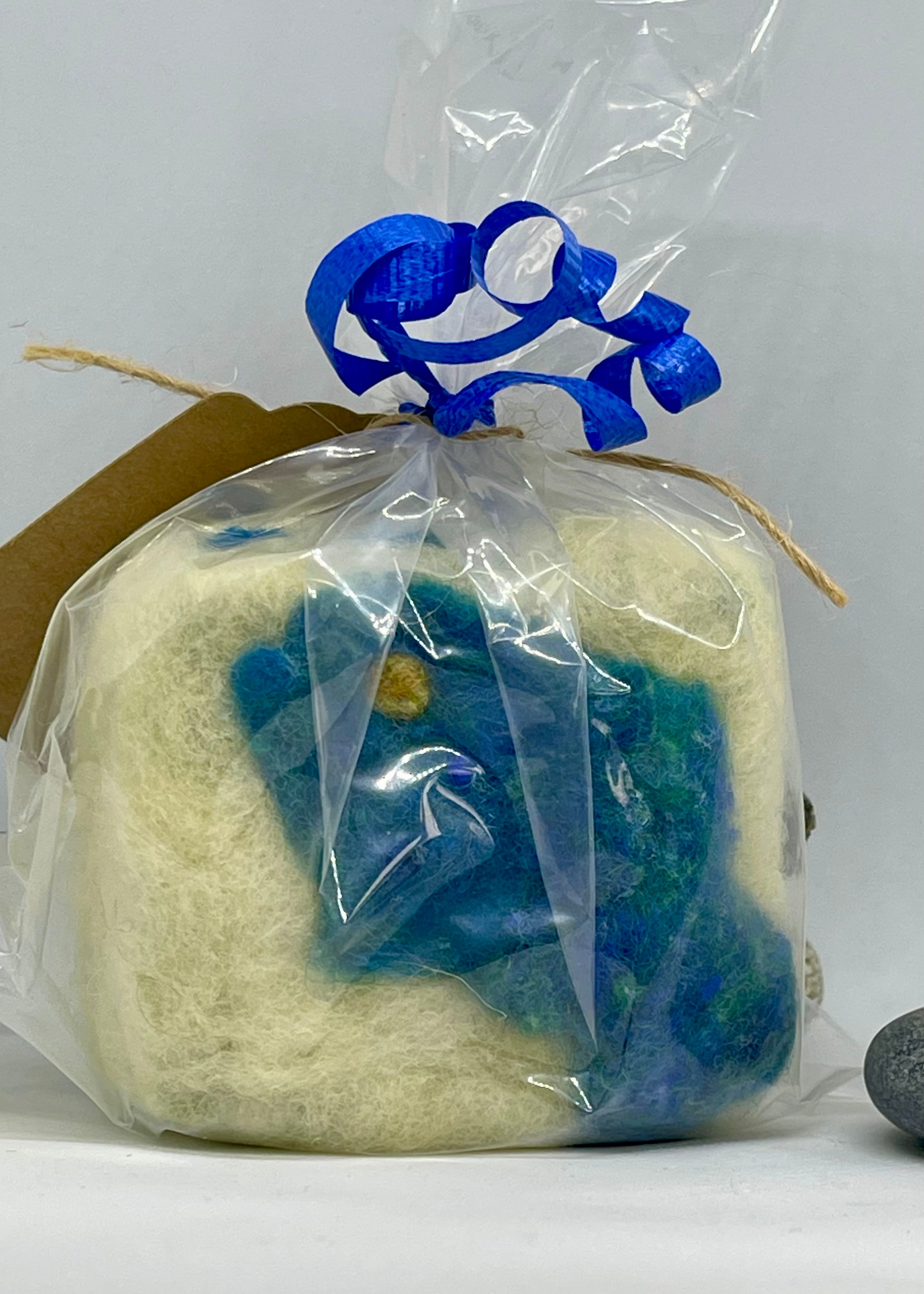 These Felted Soaps are handcrafted by Jan. These are wrapped in 100% wool for a long lasting bar of soap.