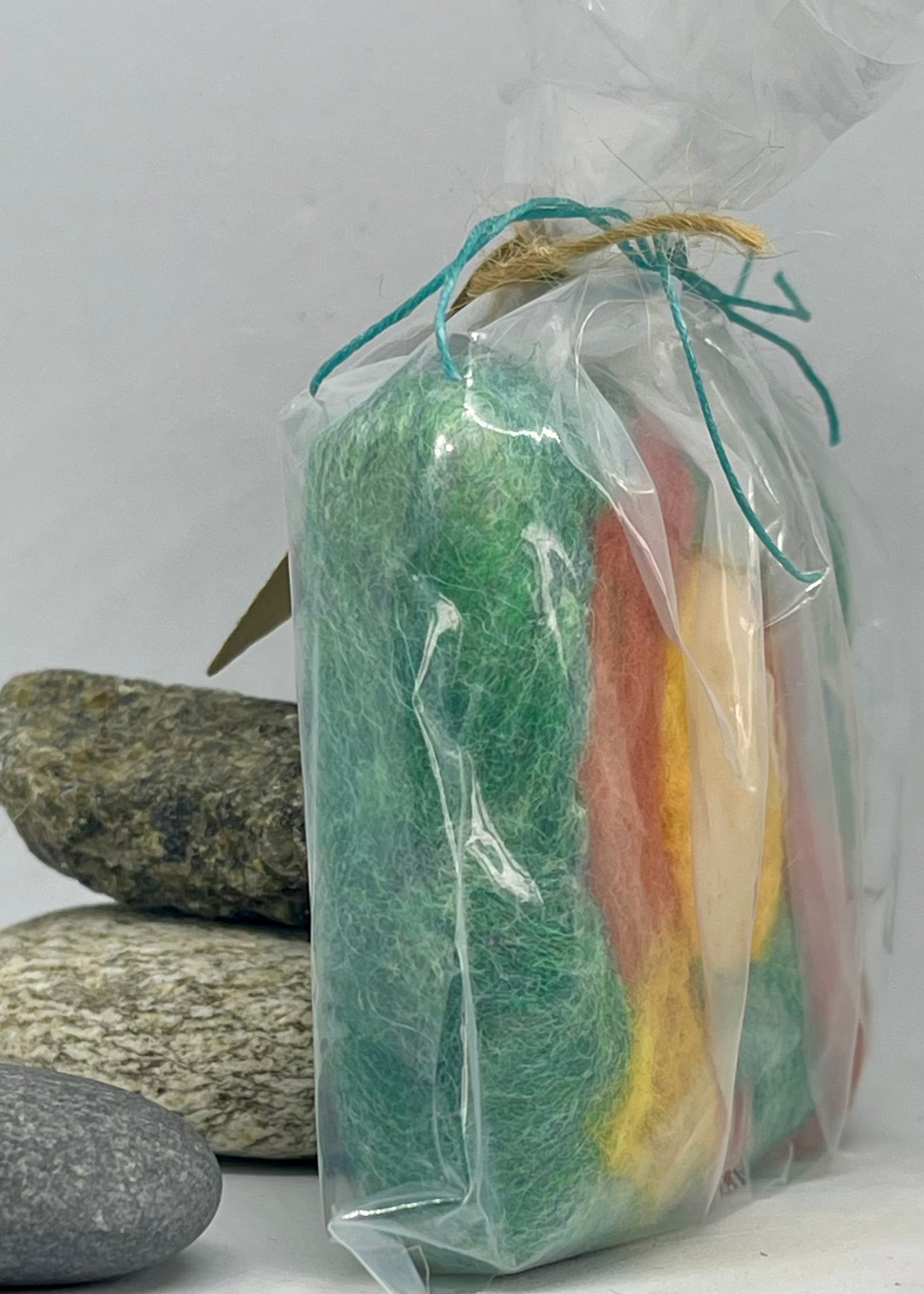 These Felted Soaps are handcrafted by Jan. These are wrapped in 100% wool for a long lasting bar of soap.